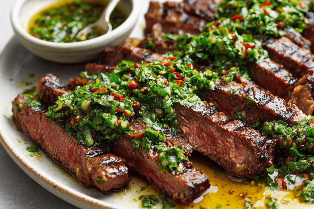 Skirt Steak Marinade with Chimichurri is a vibrant combination of deeply seasoned beef and bright herb sauce that feels both rustic and refined. Skirt steak, known for its rich flavor …