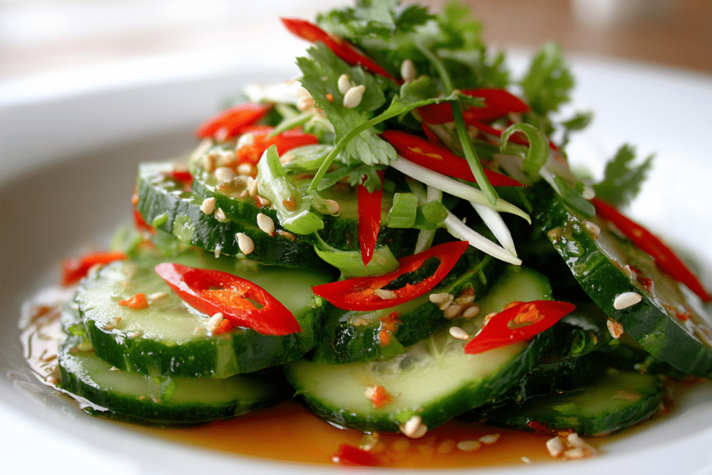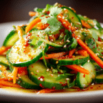 Spicy Cucumber Salad is a fresh, crunchy, and vibrant vegan dish that delivers a zesty kick in every bite. Crisp cucumbers paired with fiery chili, tangy rice vinegar, and aromatic …