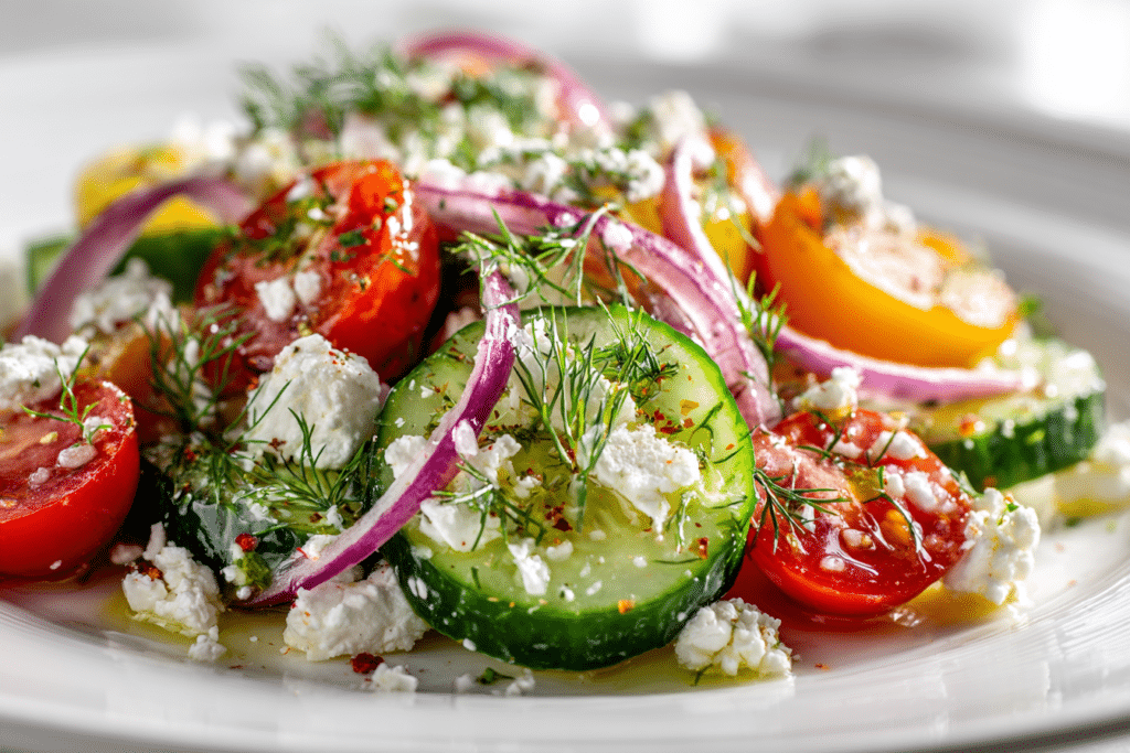 Cucumber Feta Salad with Lemon Greek Vinaigrette is a refreshing and vibrant dish that captures the essence of Mediterranean flavors. Crisp cucumbers, tangy feta cheese, and a zesty lemon vinaigrette …