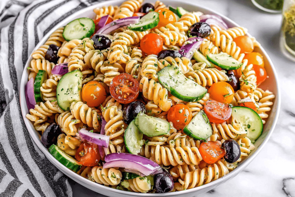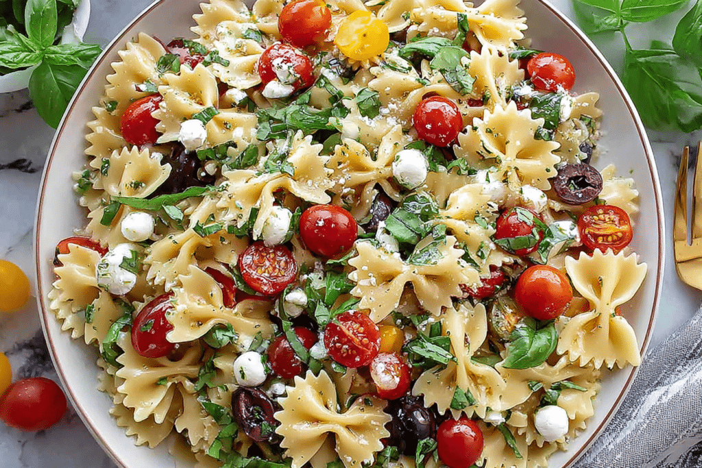 Italian Bow Tie Pasta Salad brings together tender farfalle pasta, crisp vegetables, savory add-ins, and a light Italian-style dressing in a chilled dish that works well for gatherings, lunches, and …