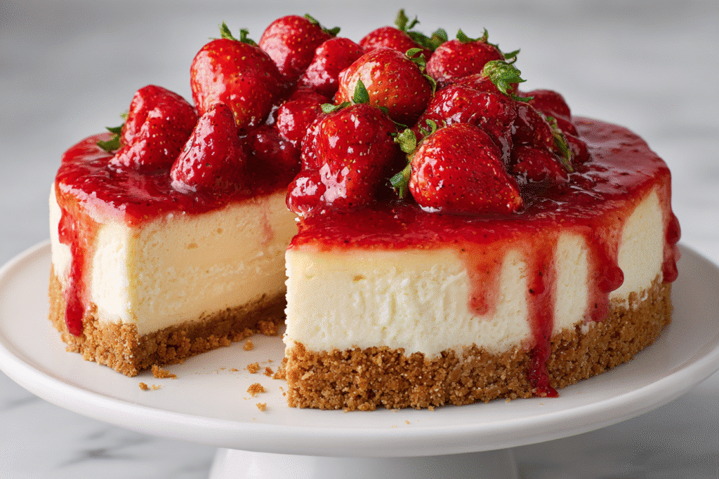 There’s something timeless about a classic strawberry cheesecake — rich, velvety cream cheese filling over a buttery graham cracker crust, crowned with glossy, fresh strawberry topping. It’s as beautiful as …