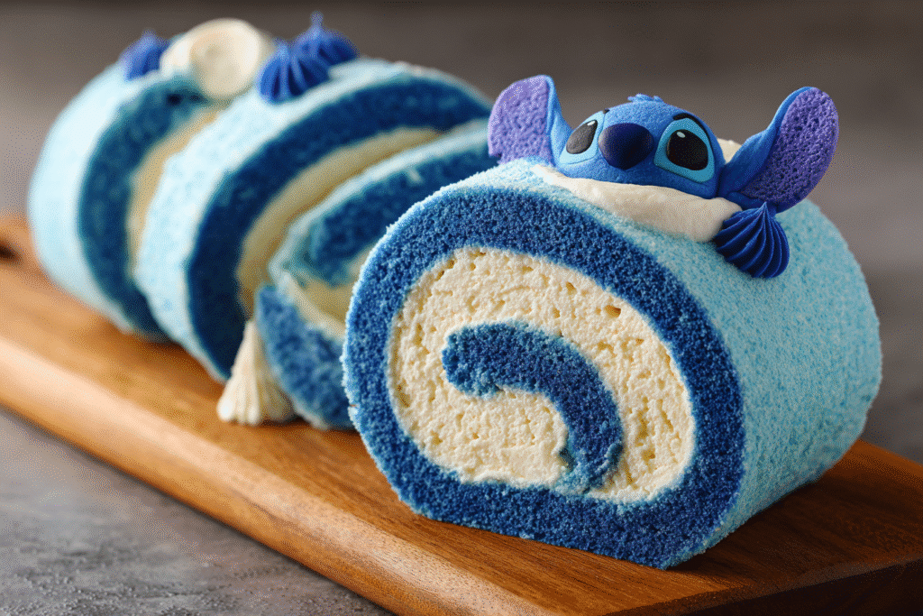 This Stitch-inspired tropical blue cake roll is a whimsical and vibrant dessert that brings a little island magic to your kitchen. With its sky-blue sponge cake, tropical flair, and creamy …