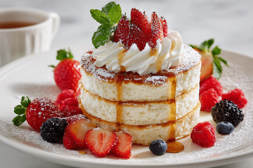 Japanese soufflé pancakes are a dreamy, airy version of traditional pancakes — towering high with a custard-like softness and gentle jiggle that makes them as fun to eat as they …