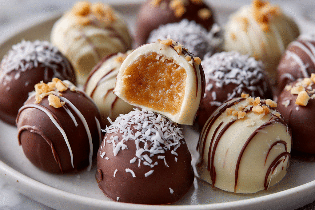 Bounty Bonbons are a simple yet indulgent treat inspired by the classic Bounty chocolate bar — a beloved coconut-filled candy coated in silky chocolate. These homemade coconut bonbons deliver the …