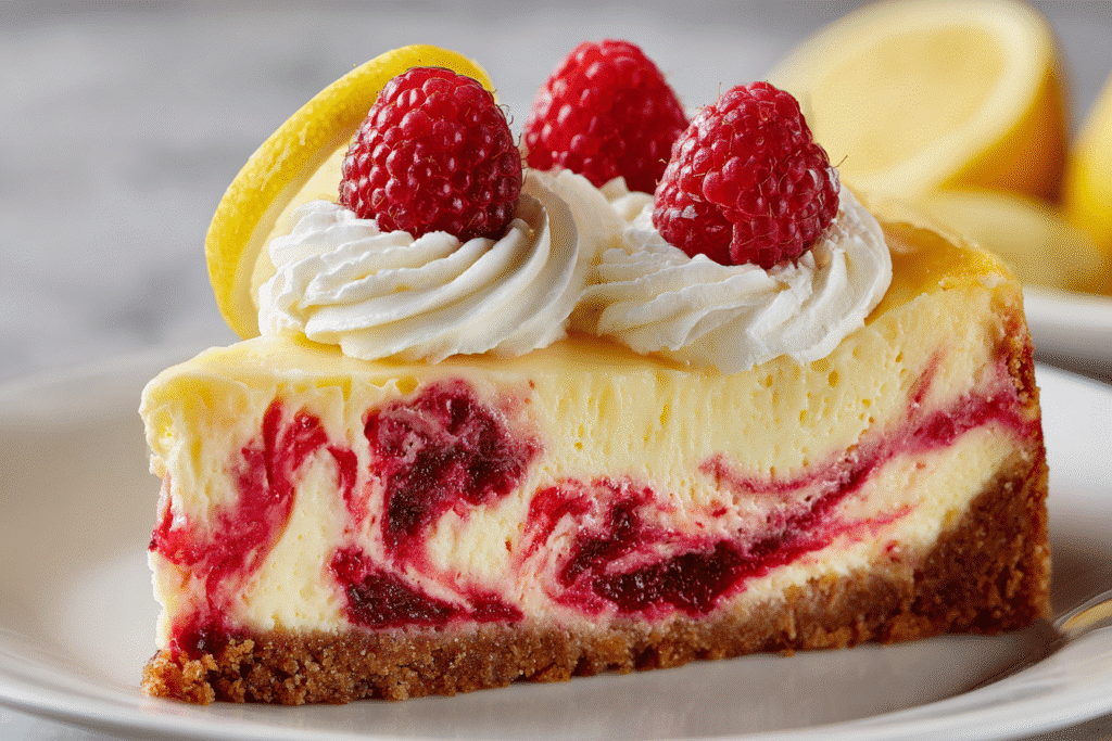 Lemon Raspberry Swirl Cheesecake is a stunning dessert that blends zesty citrus with the tart-sweet burst of raspberries, all swirled into a luxuriously creamy cheesecake filling. Set atop a buttery …