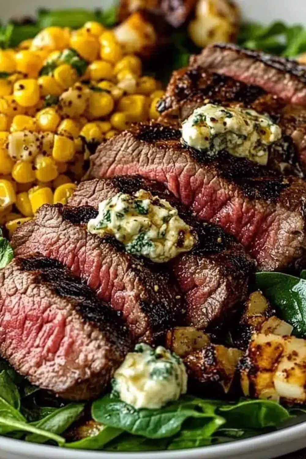This salad is more than a side dish. It stands confidently as a main course, balancing protein, fresh vegetables, and bold flavor. The balsamic marinade deepens the steak’s natural savoriness, while the Gorgonzola melts slightly against the warm meat, creating a velvety finish. Ultimate Grilled Balsamic Steak Salad with Creamy Gorgonzola & Sweet Corn works beautifully for summer dinners, casual gatherings, or an elevated weeknight meal.