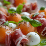 Fresh Caprese Melon Salad Featuring Prosciutto and Creamy Mozzarella for Summer Delight is a refreshing dish that captures the essence of warm-weather dining. It blends sweet melon, delicate prosciutto, and creamy mozzarella into a balanced plate that feels light yet satisfying.
