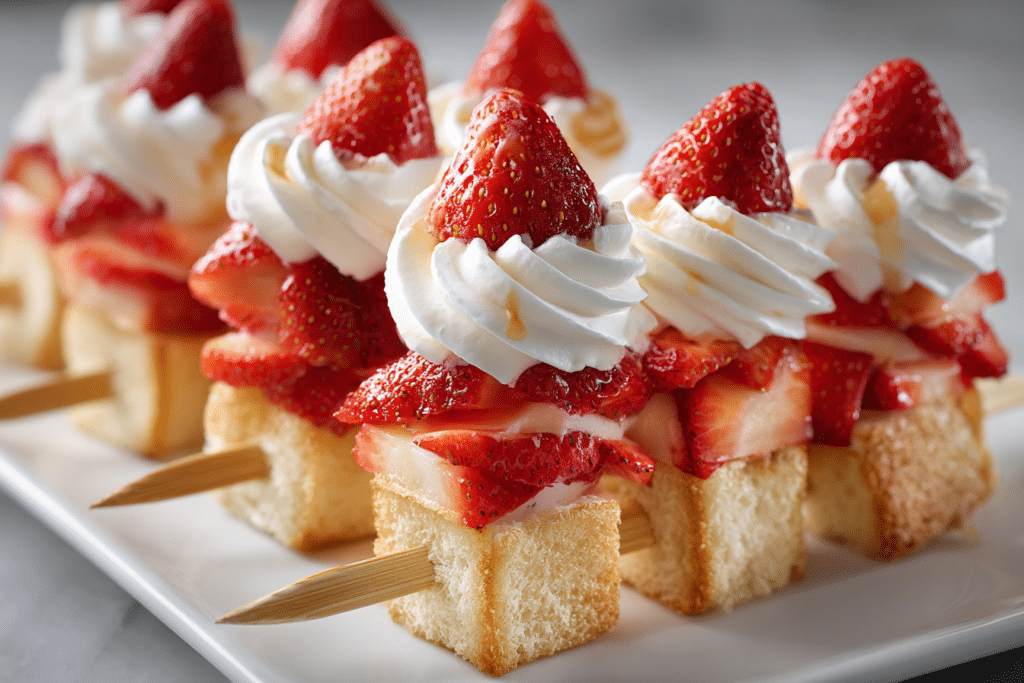 Strawberry shortcake kabobs are a playful, no-fork twist on a classic summer dessert. With fluffy cubes of cake, juicy strawberries, and whipped cream in every bite, these kabobs offer all …
