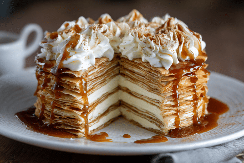 A vanilla & speculoos crêpe cake is as elegant as it is irresistible—thin, buttery crêpes layered with creamy vanilla filling and rich speculoos spread, stacked into a show-stopping dessert with …