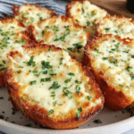 Buttery garlic bread topped with melted mozzarella and Parmesan, baked until crisp and golden for a simple side dish.
