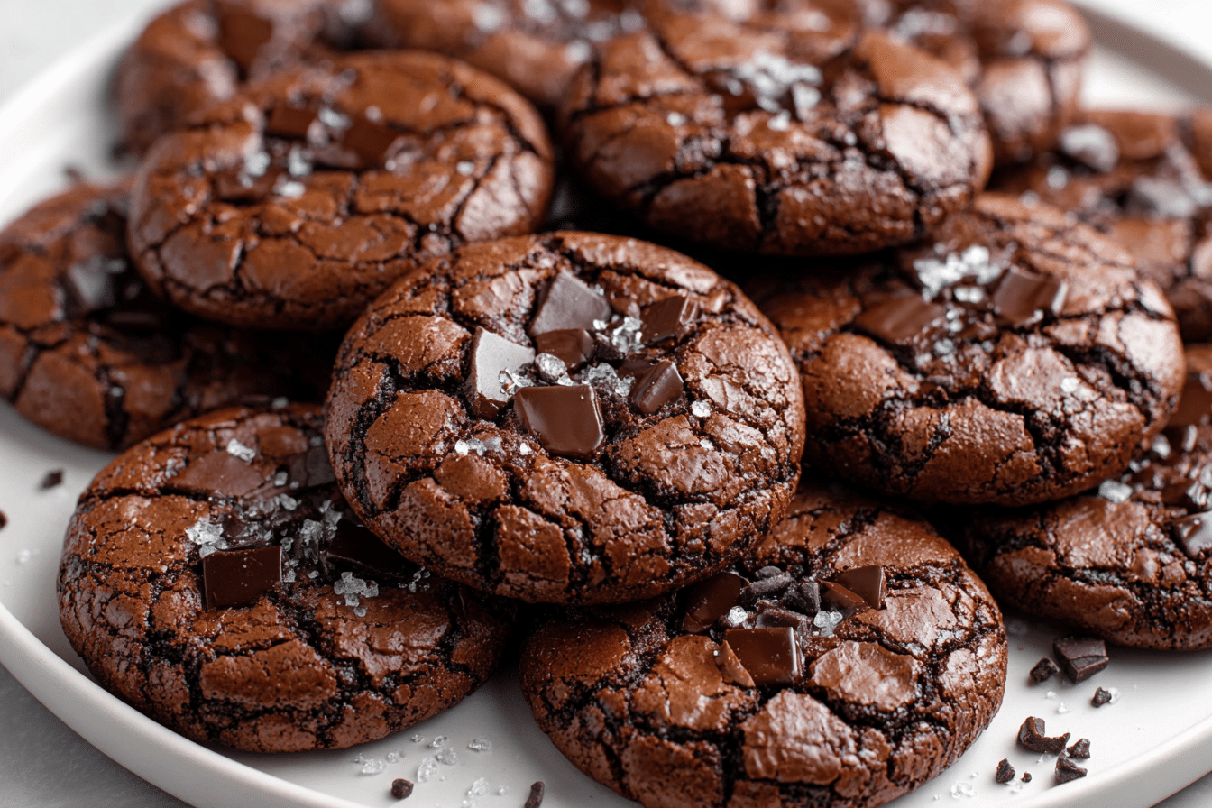 Scoop the dough using a cookie scoop or tablespoon onto the prepared baking sheets, spacing them about 2 inches apart. The dough will be slightly sticky, but that’s normal for fudgy cookies. For a professional look, flatten the tops slightly with your fingers or the back of a spoon. Optionally, sprinkle a pinch of sea salt on each cookie to enhance the chocolate flavor.