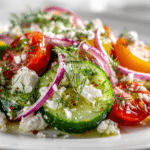 Cucumber Feta Salad with Lemon Greek Vinaigrette is a refreshing and vibrant dish that captures the essence of Mediterranean flavors. Crisp cucumbers, tangy feta cheese, and a zesty lemon vinaigrette combine to create a salad that is both light and satisfying. Perfect for warm days, picnics, or as a side to your favorite grilled dishes, this salad balances creamy, crunchy, and citrusy elements in every bite. The simplicity of the ingredients allows the natural flavors to shine, making it an approachable yet sophisticated dish for any occasion.