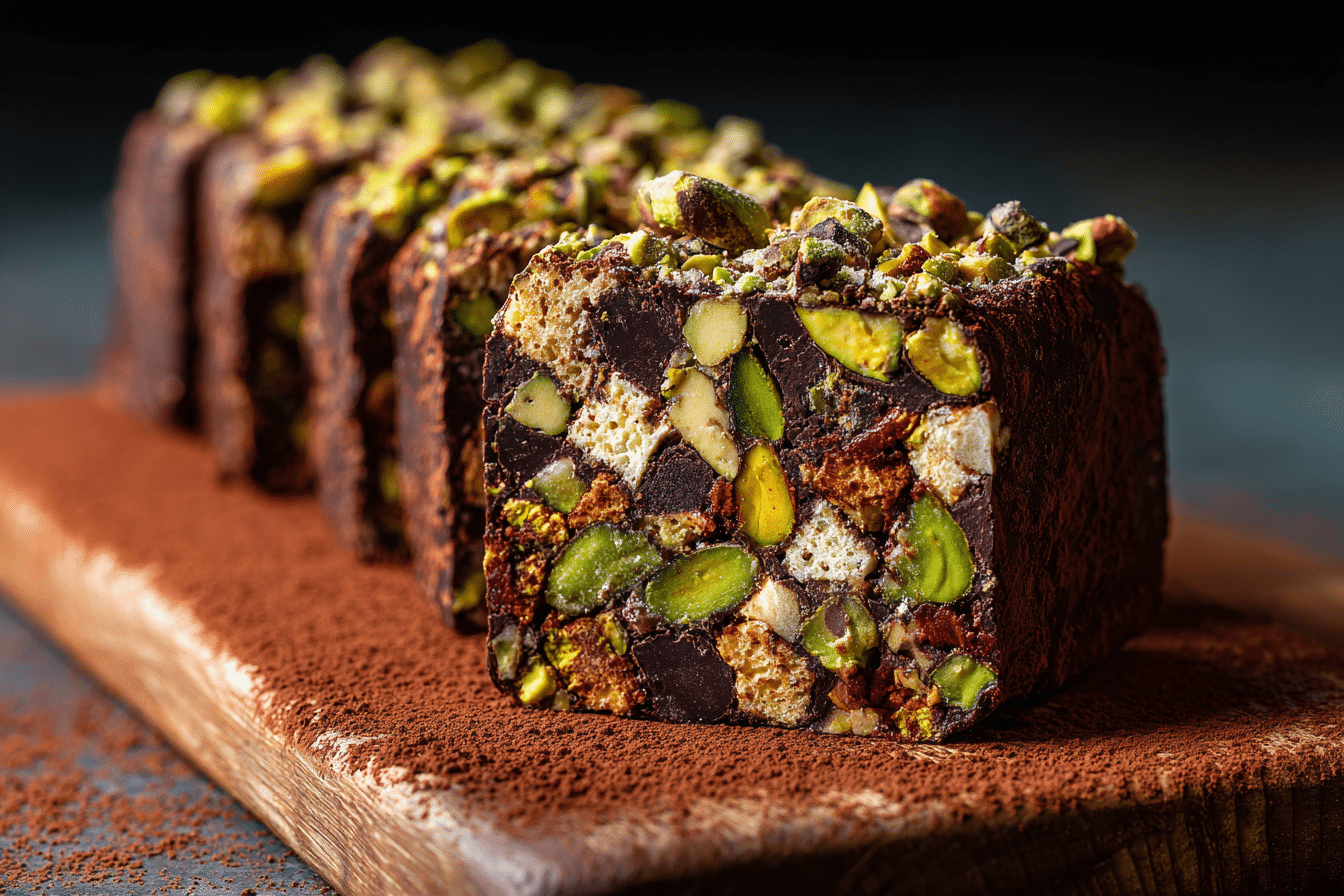 Chocolate Fridge Cake with Pistachios – No Bake Treat