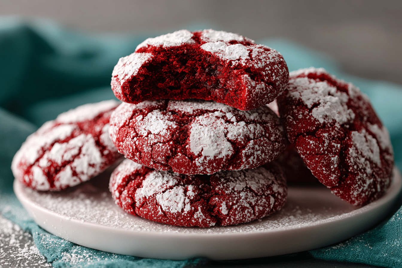 These Red Velvet Crinkle Cookies are soft, fudgy, and beautifully rolled in powdered sugar. A festive favorite for Christmas, Valentine’s Day, or any celebration.