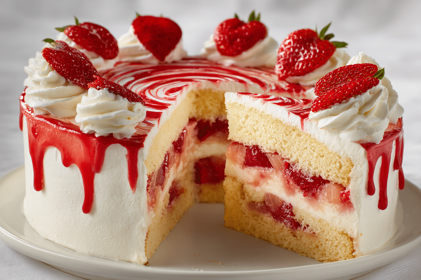 Strawberry shortcake is the quintessential summer dessert — light, buttery biscuits layered with juicy macerated strawberries and pillows of whipped cream. It’s the kind of recipe that lives in family memory: served at picnics, after Sunday dinners, or as the sweet highlight of strawberry season.