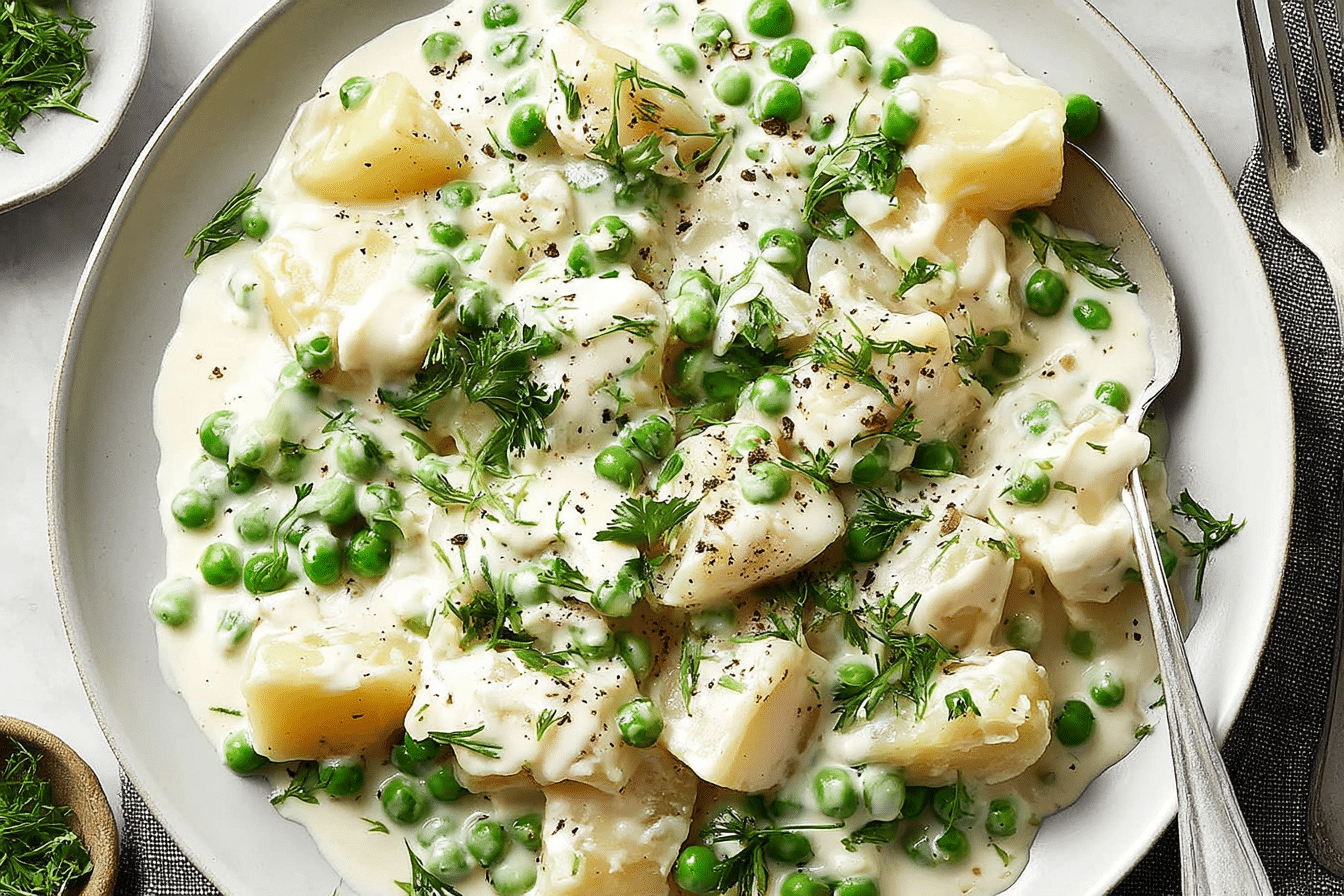 Creamed Peas and Potatoes is a classic, cozy side dish that perfectly combines tender potatoes with sweet, vibrant peas in a rich, velvety sauce. This dish captures the essence of home-cooked comfort, offering a smooth, creamy texture and a gentle hint of butter and herbs that complement almost any main course. Ideal for family dinners, Sunday roasts, or holiday spreads, it brings together familiar flavors in a dish that’s both satisfying and elegant.