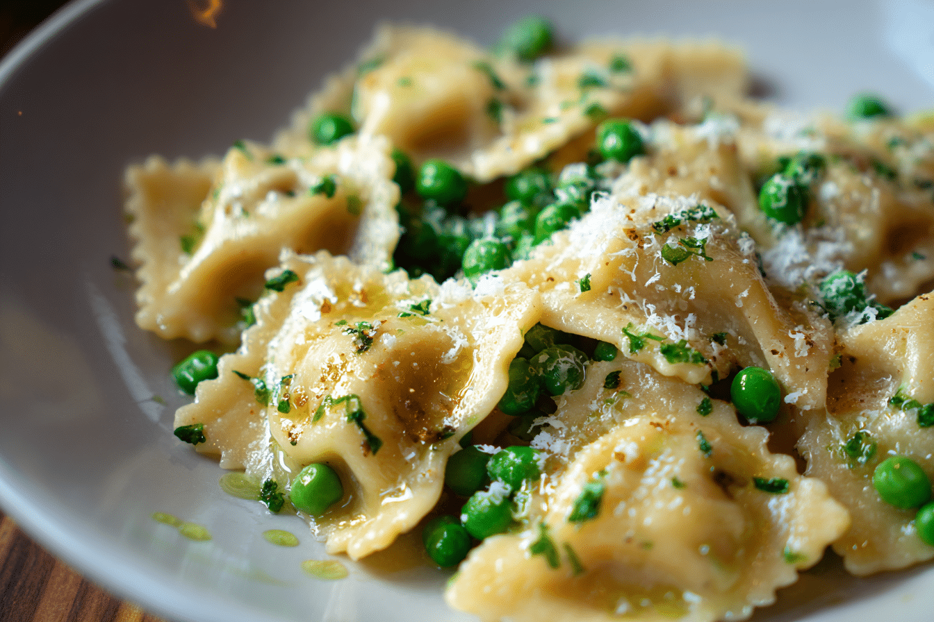 A comforting Italian classic combining tender pasta with sweet peas in a light, flavorful sauce.