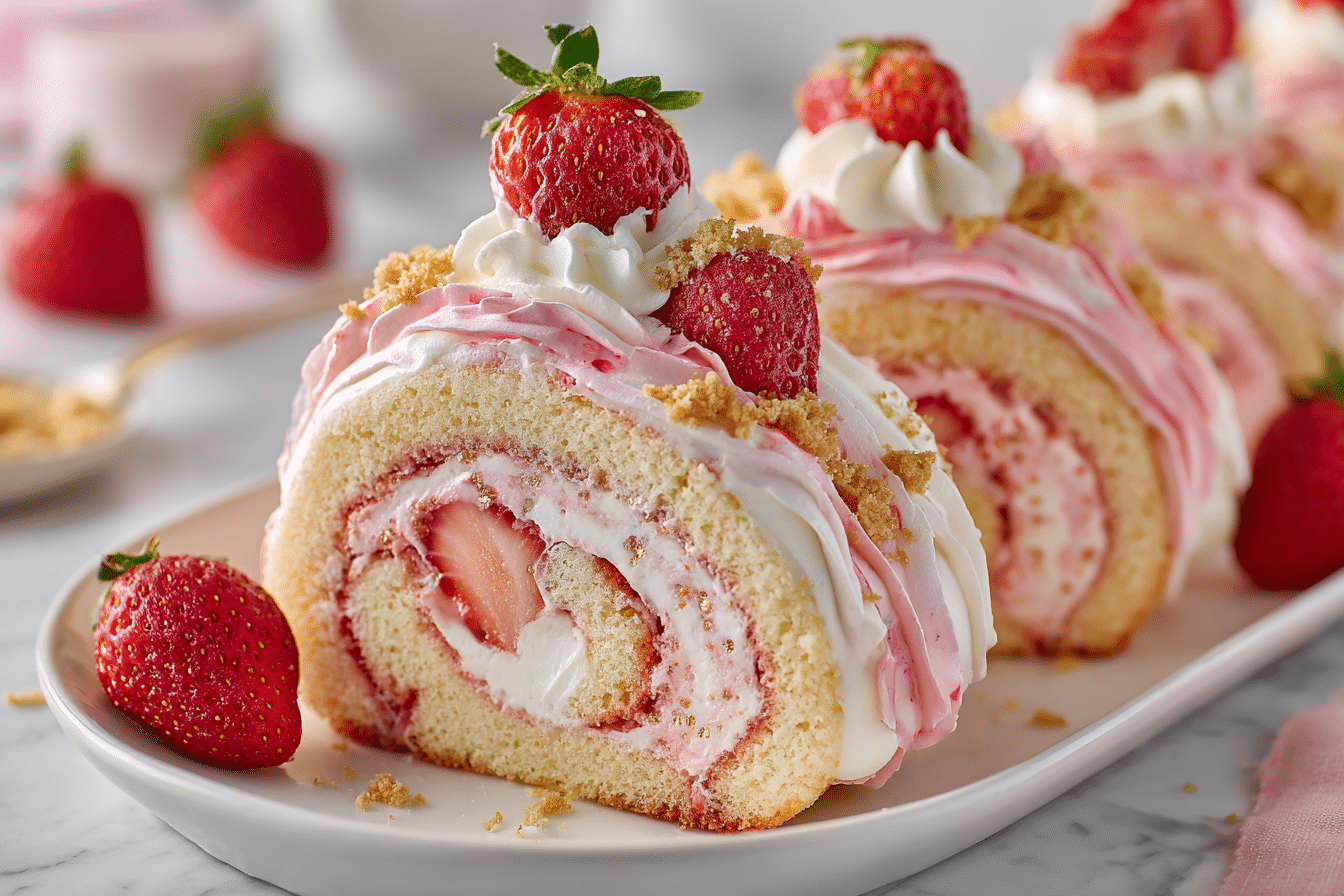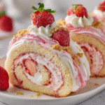 This homemade version is soft, rich, fruity, and visually striking — perfect for birthdays, summer gatherings, baby showers, or any time you want to impress. The roll is light and spongey, the filling is creamy and indulgent, and the whole dessert tastes like strawberry shortcake in every slice.