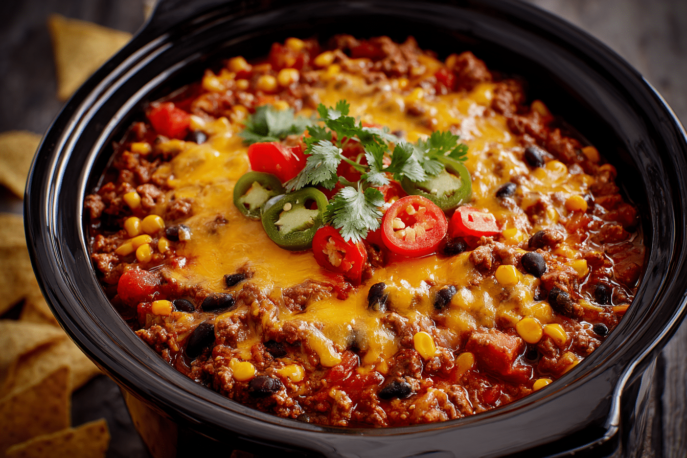 Crockpot Taco Casserole with Cheesy Layers and Beef