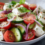 Easy Cucumber Caprese Salad is a crisp, refreshing twist on the classic Italian favorite. By adding cool cucumber to the traditional combination of tomatoes, mozzarella, and basil, this salad becomes even lighter and more vibrant. It’s the kind of dish that feels bright and clean with every bite.