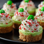 Add a playful twist to your holiday dessert table with Grinch Mini Cheesecakes — bright green, bite-sized treats inspired by everyone’s favorite holiday mischief-maker. With a creamy cheesecake center, vibrant color, and a red candy heart on top, these whimsical cheesecakes are as eye-catching as they are delicious.