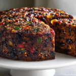 A rich, spiced, and deeply flavorful dark fruit cake packed with dried fruits, toasted nuts, and molasses — perfect for holidays or special occasions.