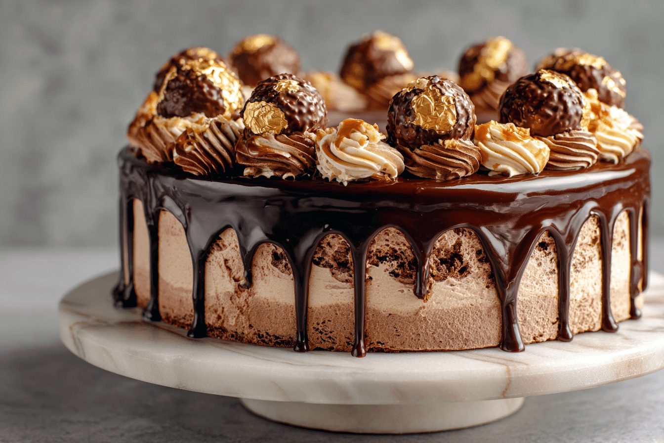 Combining two luxurious desserts into one unforgettable creation, the Ferrero Rocher Tres Leches Cake is rich, moist, and indulgent. It fuses the classic Latin American tres leches cake — known for its ultra-moist, milk-soaked sponge — with the irresistible flavor of Ferrero Rocher chocolates, which blend hazelnuts, chocolate, and crisp wafer in every bite.