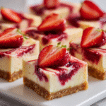 These keto strawberry cheesecake bars feature an almond flour crust, a creamy sugar-free filling, and a strawberry swirl. Low in carbs, high in flavor—perfect for keto and low-sugar diets.