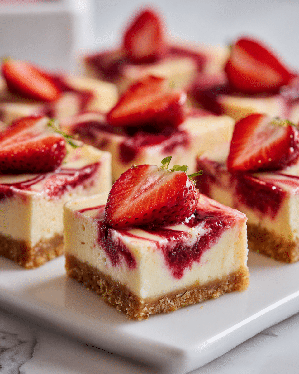 Swirl gently—don’t overmix the strawberry puree into the cheesecake layer or you’ll lose that beautiful marbled look.