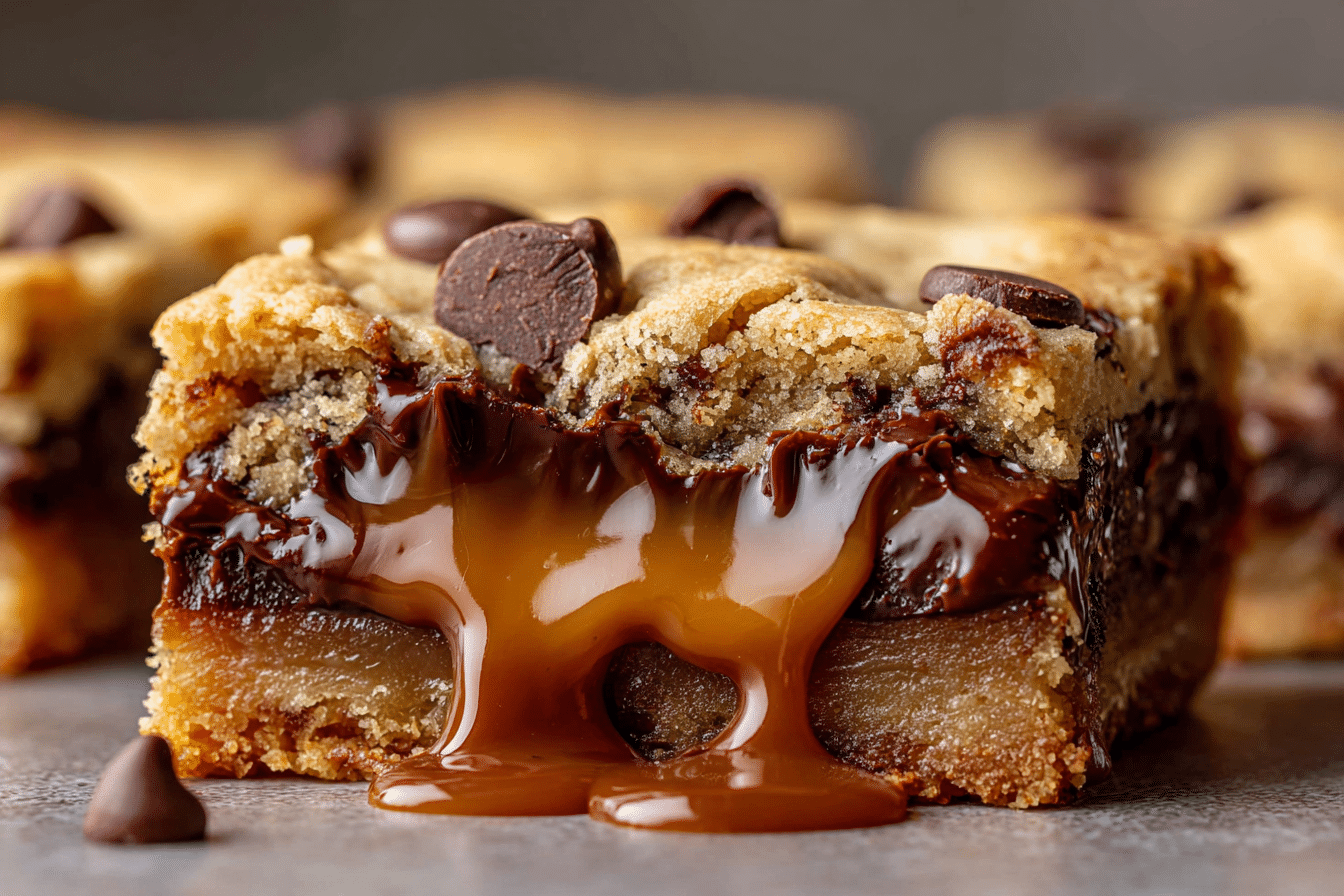 This recipe is all about indulgence. The cookie base is soft and slightly crisp at the edges, while the center oozes with sweet, buttery caramel and chocolate. The bars are thick, messy in the best way, and just sweet enough to keep you coming back for more. They’ve become a staple at potlucks, bake sales, and holiday trays because they disappear fast and everyone wants the recipe.
