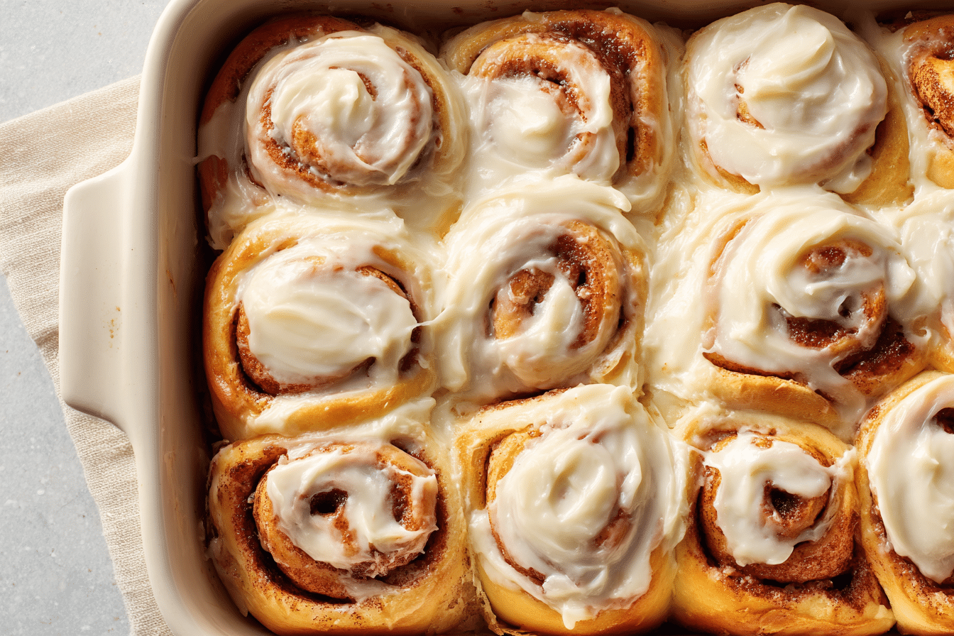 These soft, gooey cinnamon rolls are filled with buttery cinnamon sugar and topped with luscious cream cheese frosting. A bakery-style classic perfect for cozy mornings and special occasions.