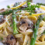 Creamy Lemon Asparagus & Mushroom Pasta with tender vegetables, bright lemon, and a rich, silky sauce, perfect for spring dinners.