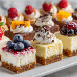 Baked in mini muffin pans, these bites deliver all the classic flavor of New York-style cheesecake, but with quicker prep, shorter baking time, and easy individual portions. You can enjoy them plain or dress them up with chocolate drizzle, fruit topping, or cookie crusts for endless variety.