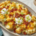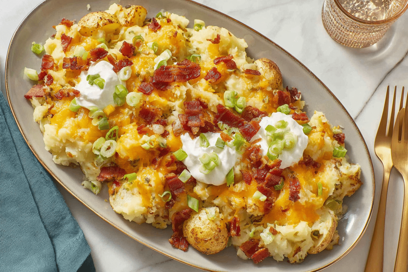 Loaded Baked Potato Casserole is a rich, creamy dish packed with potatoes, cheese, and bacon, perfect for family dinners or potlucks.