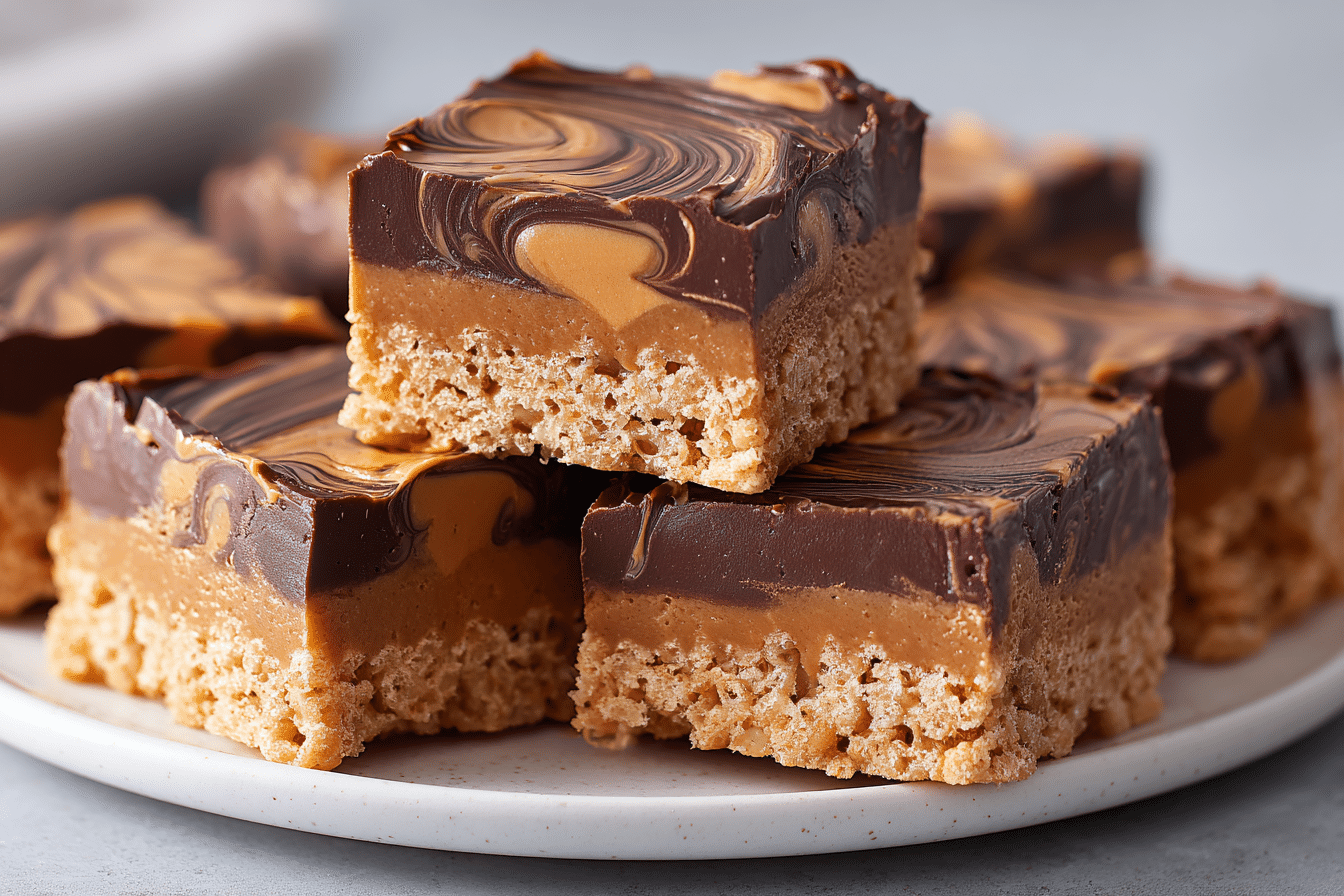 Soft, chewy peanut butter Rice Krispie treats made with just 5 ingredients and no baking required. A creamy, crispy twist on the classic favorite — perfect for parties, snacks, or gifting.