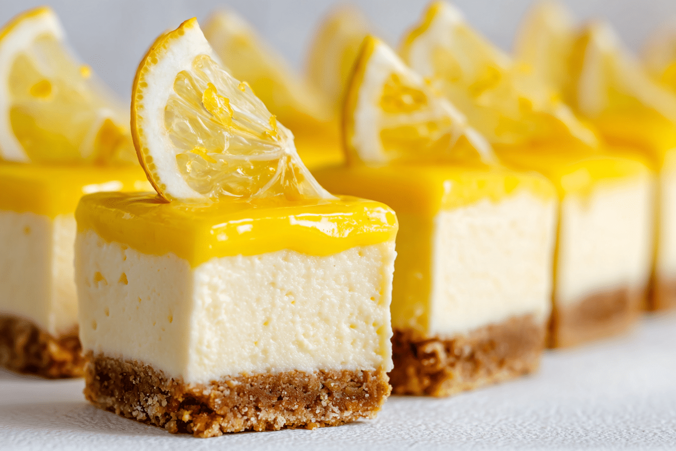 These Divine No-Bake Vegan Lemon Cheesecake Bars are the perfect combination of creamy, refreshing, and completely plant-based. With a zesty lemon burst and a silky-smooth cashew filling, these bars are made without dairy, refined sugar, or baking — yet taste every bit as indulgent as a classic cheesecake.