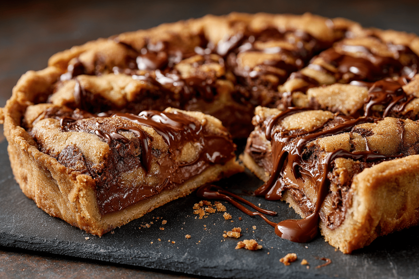 A warm, soft-baked cookie pie layered with gooey Nutella and melty chocolate chips — perfect for sharing or savoring solo.