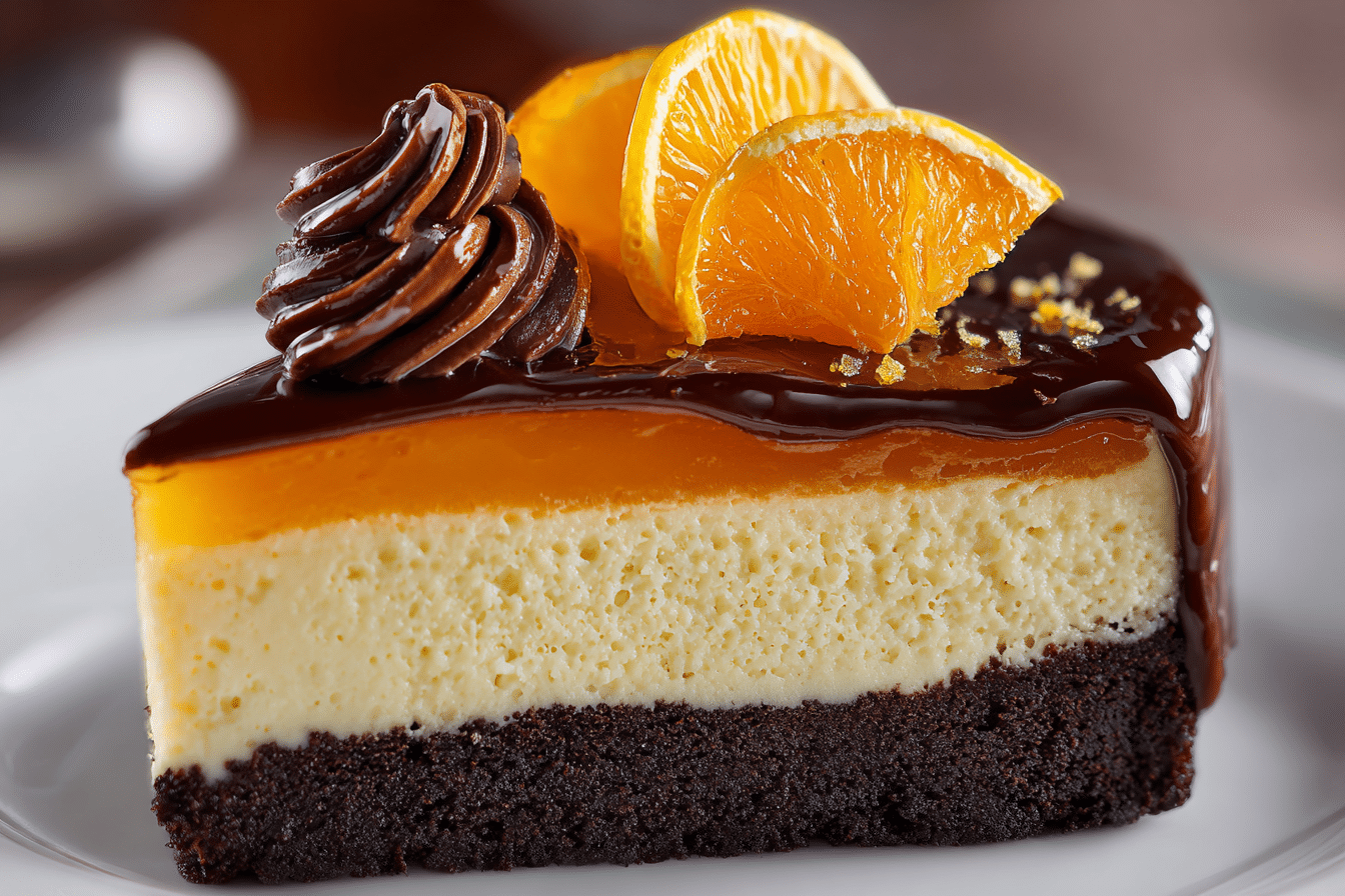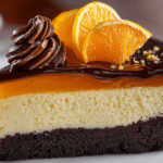 A rich and creamy chocolate orange cheesecake with a smooth texture and bold citrus-chocolate flavor, topped with optional ganache for extra indulgence.