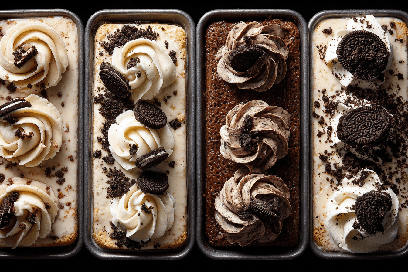 • Oreo cookies: Crushed and folded into the batter for texture and flavor throughout.
