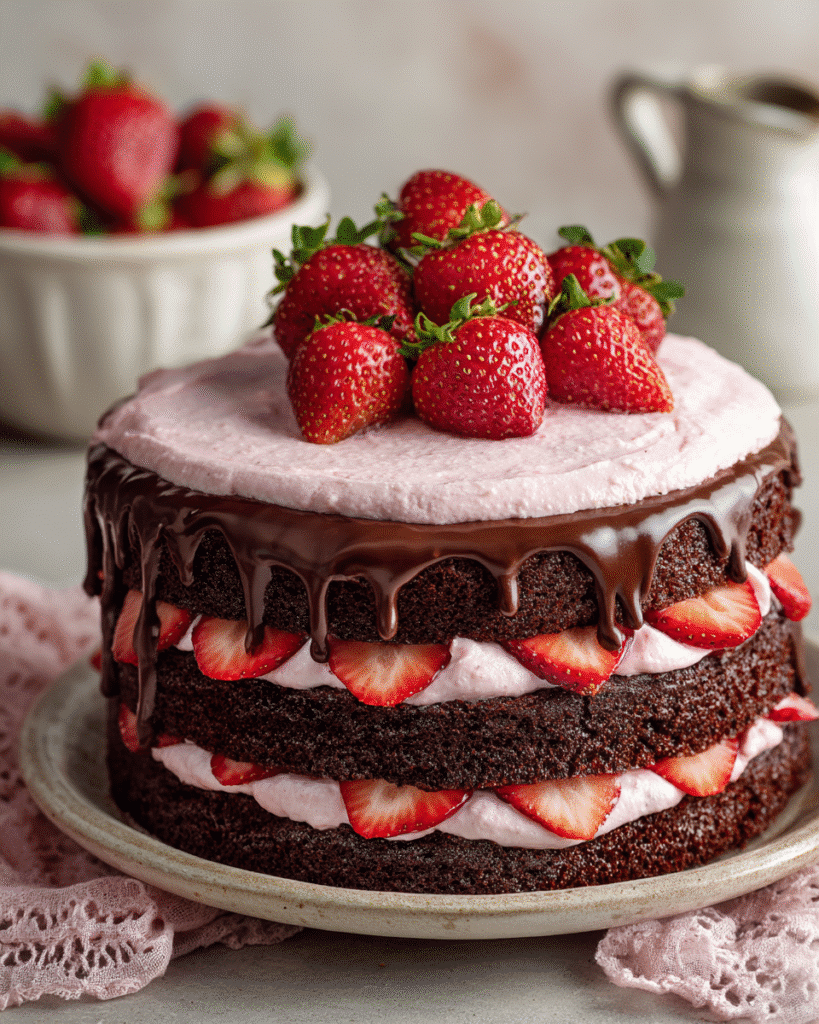 Chocolate Strawberry Layer Cake – Easy Baking Dessert