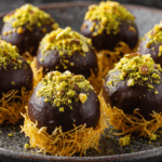 Easy no-bake chocolate balls inspired by Dubai flavors. Made with crushed biscuits, cocoa, and sweetened condensed milk, then rolled in coconut or nuts for a chewy, fudgy bite.