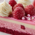 This cheesecake combines the tender, smooth richness of traditional velvet-style cakes with the tangy brightness of fresh raspberries. The result? A balanced bite that’s rich but never heavy, sweet with a tart edge, and stunning in appearance.