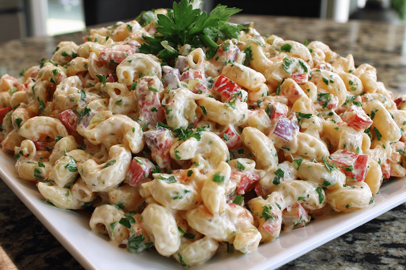 Creamy macaroni salad with tender pasta, crisp vegetables, and tangy dressing, perfect for gatherings, picnics, and easy meals.