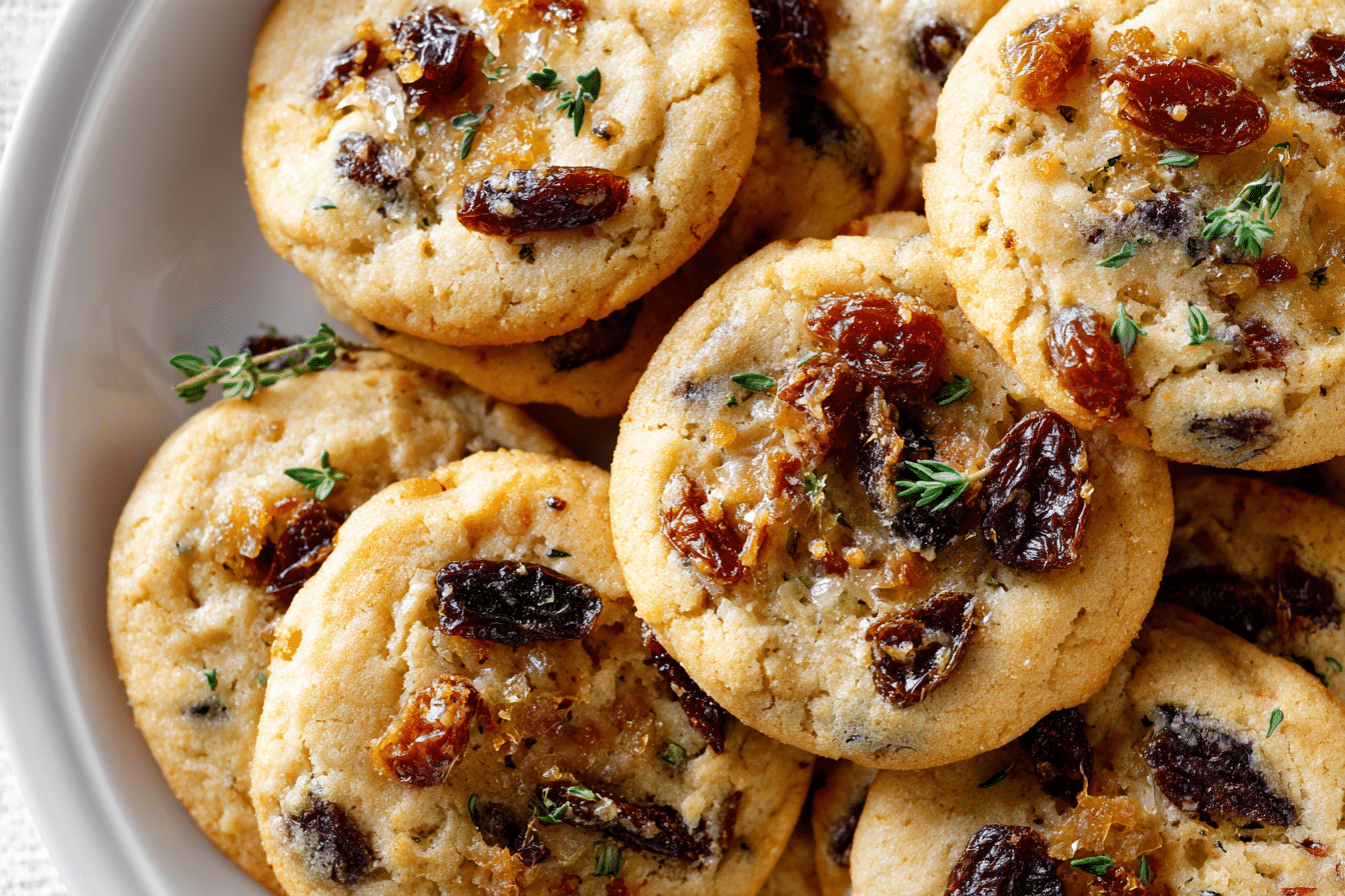 Date Cookies (Soft, Sweet and Chewy Recipe) with Olives + Thyme are a unique twist on classic chewy date cookies. These cookies balance the natural sweetness of dates with the subtle briny flavor of olives and the earthy aroma of fresh thyme, creating a sophisticated, flavorful treat. Each cookie is soft, tender, and packed with complex layers of taste that surprise and delight the palate. Perfect for an afternoon snack, tea-time indulgence, or a creative dessert offering, these cookies bring gourmet flavors into your home kitchen.