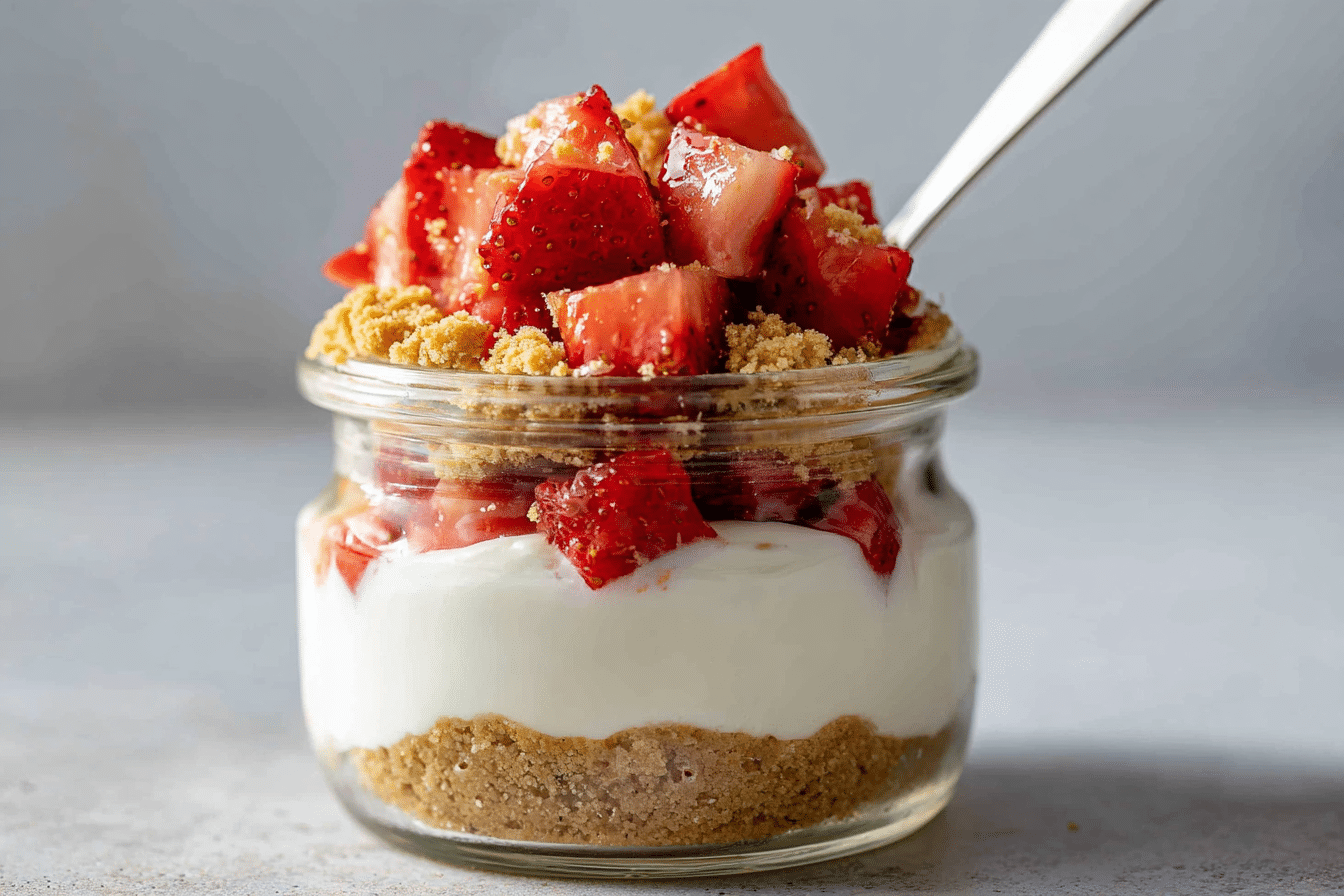 Strawberry Protein Cheesecake Jars – Quick No Bake Snack