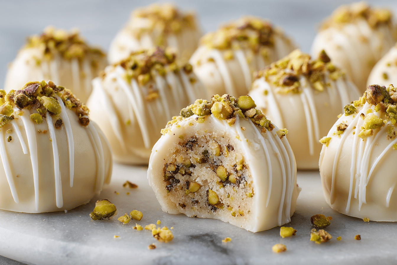 Creamy, rich white chocolate truffles with crunchy pistachios—these elegant no-bake treats are perfect for gifting, celebrations, or everyday indulgence.